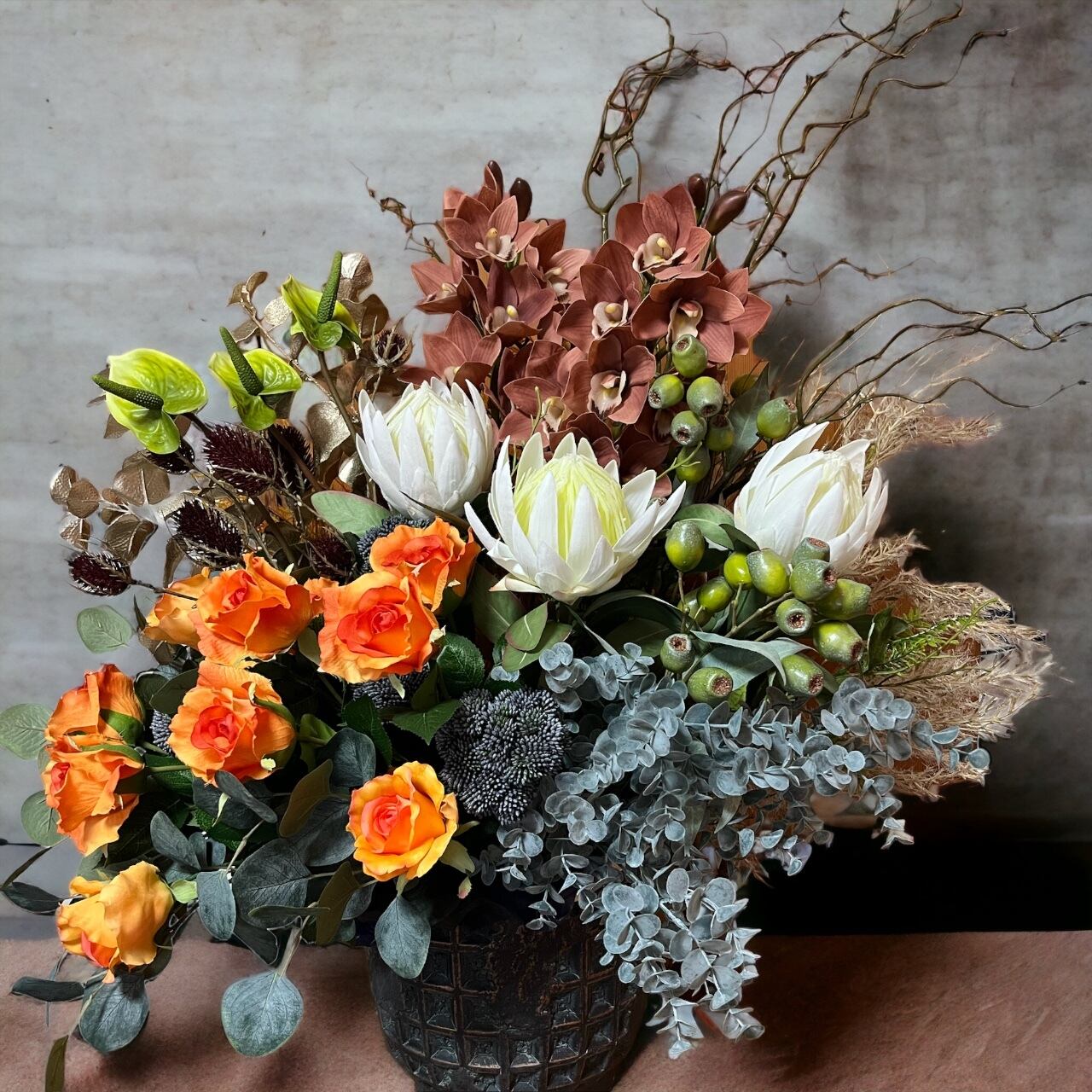 こちらの商品は四季折々の美しさを楽しむために特別にデザインされた、季節のエントランスフラワー装飾です。豪華で華やかな雰囲気を演出し、お部屋や玄関を彩る最適なアイテムとなっています。季節ごとに咲き誇る花々が、訪れる人々に温かい印象を与えます。