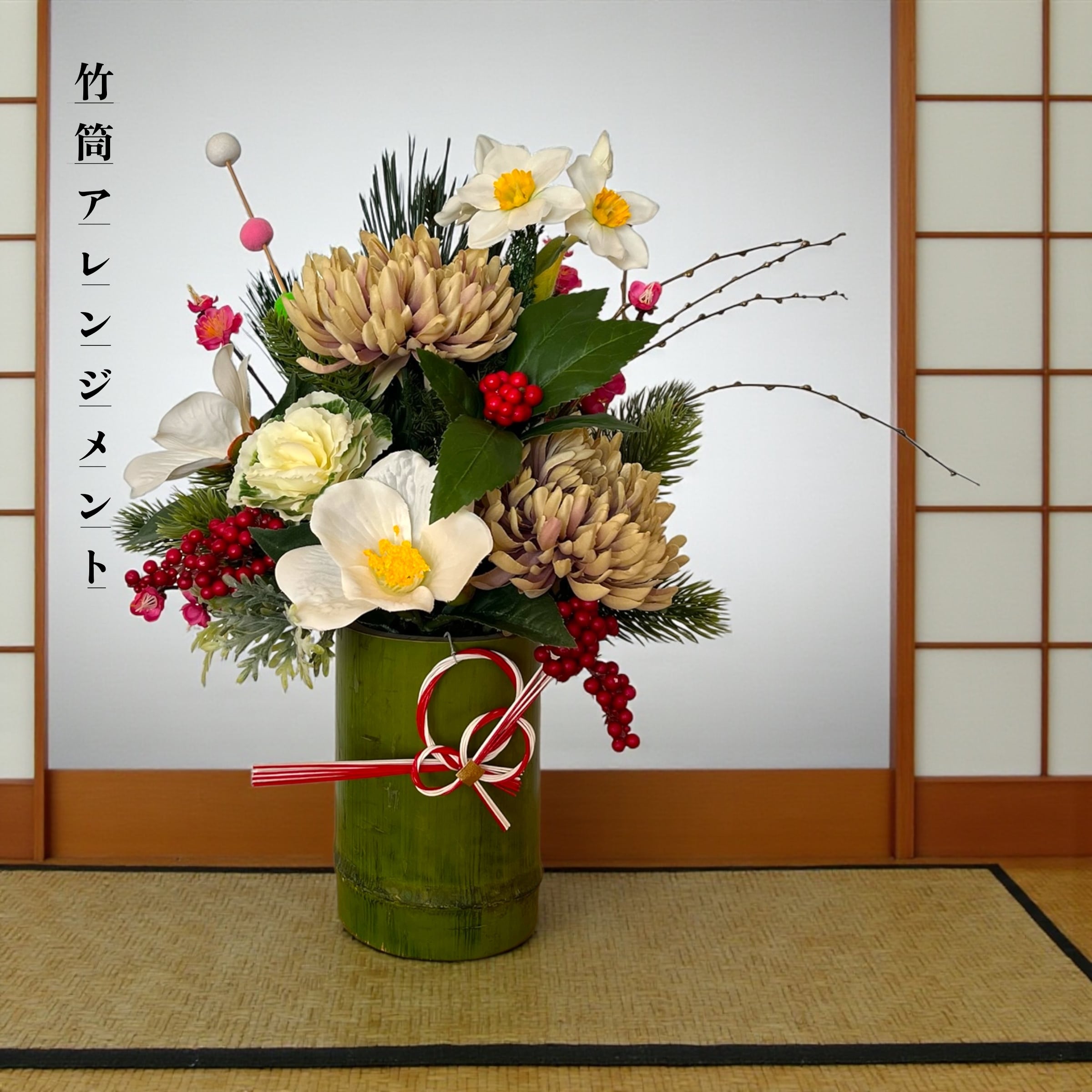 この「竹筒アレンジメント」は、自然素材である竹筒との相性が素晴らしい美しく高品質な