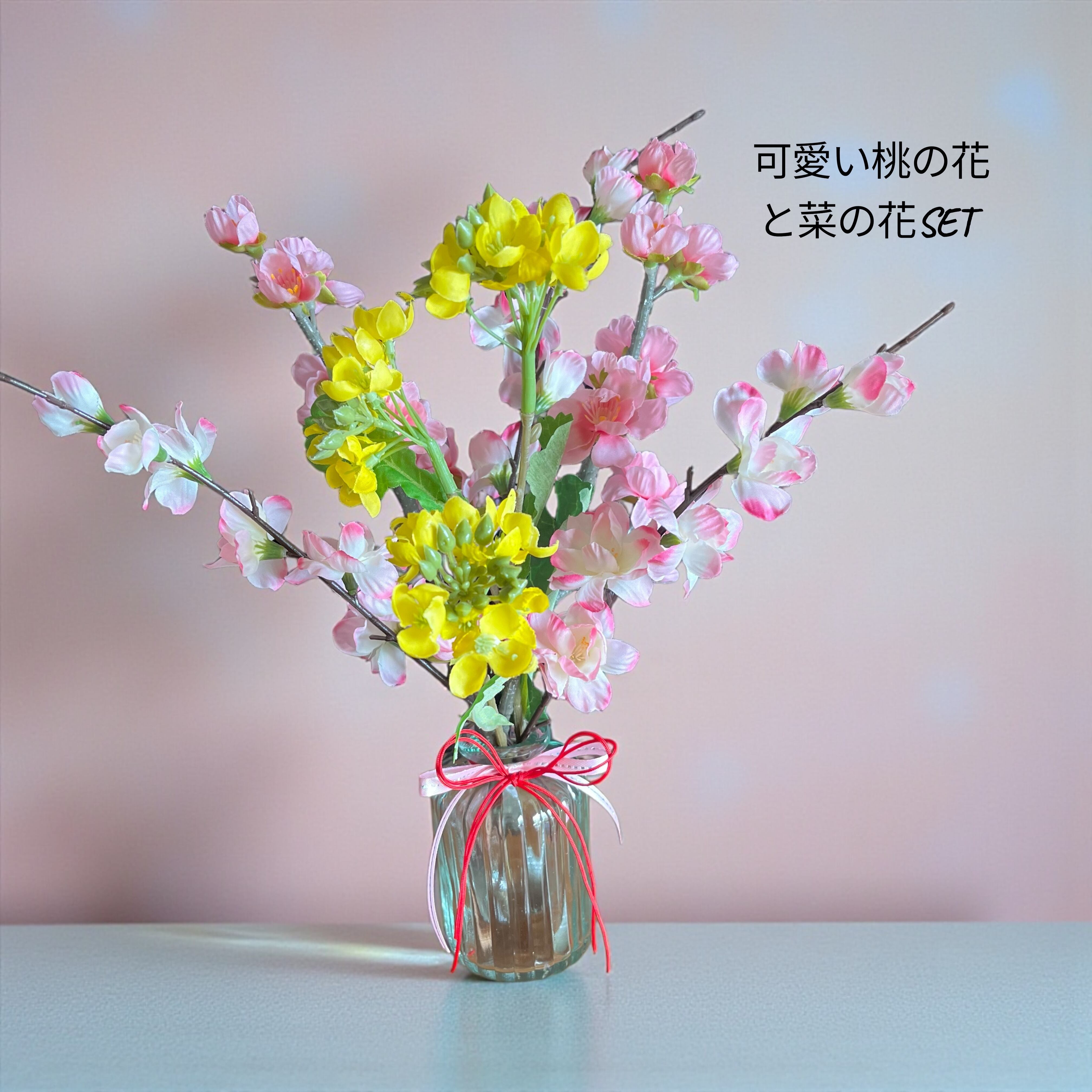 この「春限定!ひなの花SET」は、雛祭りを祝うためにデザインされたアイテムです。高品質なアーティフィシャルフラワーを使用しているので、長く美しさを保ちながら手間いらずでお楽しみいただけます。優しく癒されるピンク色と明るい菜の花の黄色は見ているだけで心が和みます。