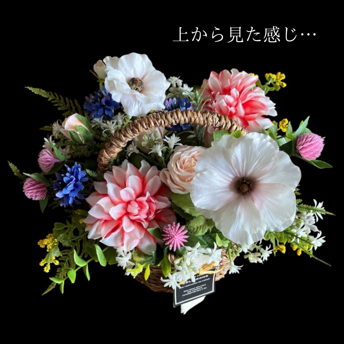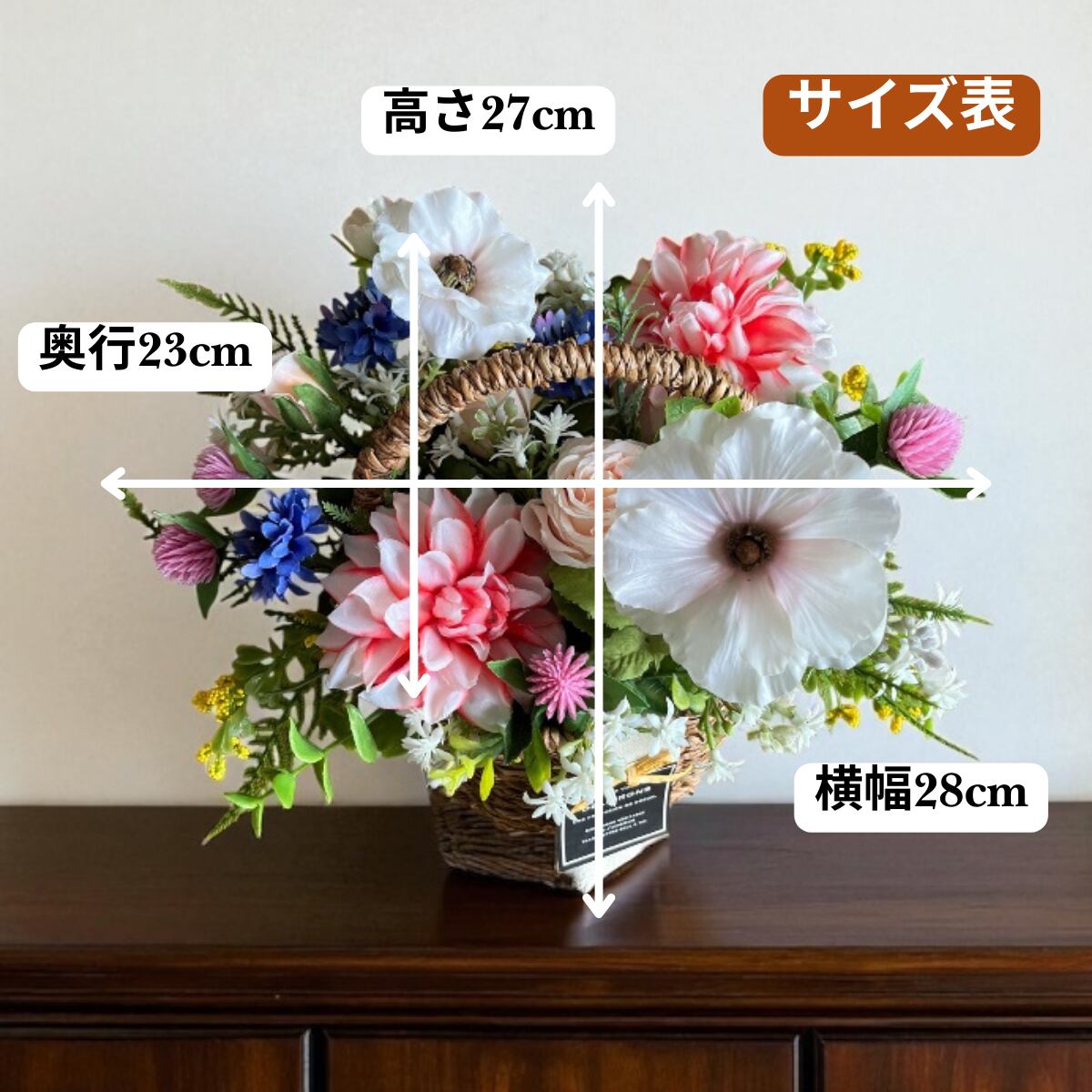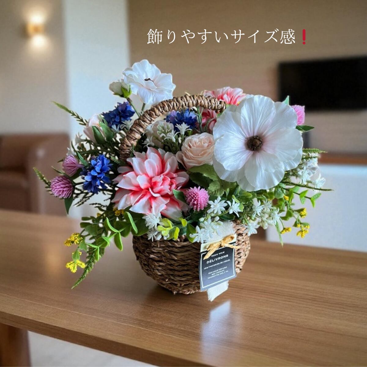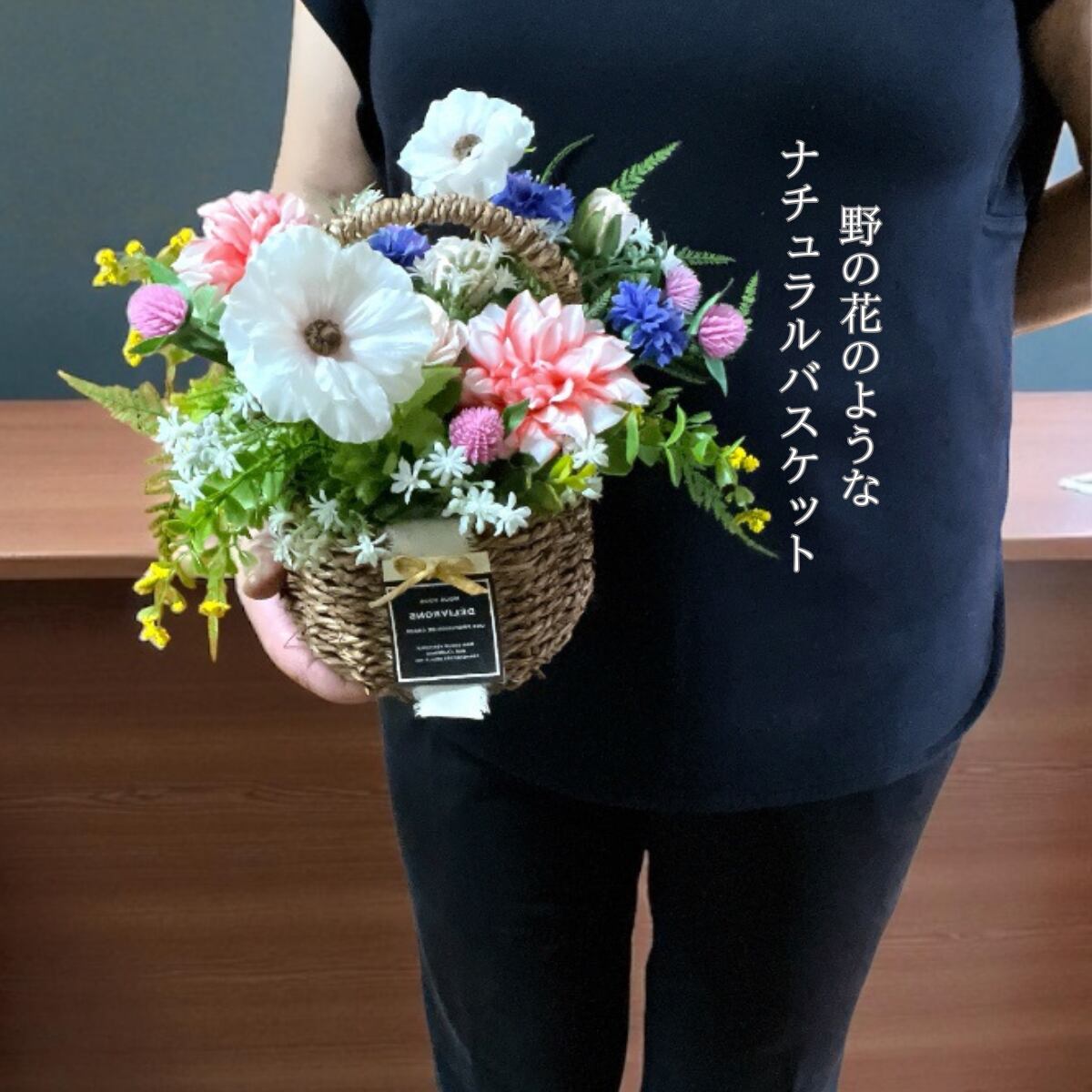 ♦︎こちらの商品は、コロンとしたカゴも可愛い「ミニバスケットアレンジ」です。ピンク系のアーティフィシャルフラワーをふんわりとアレンジしたデザインが特徴で、ナチュラルな雰囲気を醸し出します。可愛いバスケットに野の花を生けたようなこのアイテムは、どんなお部屋にもぴったりとマッチし、心温まる空間を演出します。品質の高い造花・アーティフィシャルフラワーを使っており、見た目には生花のような美しさがあります。