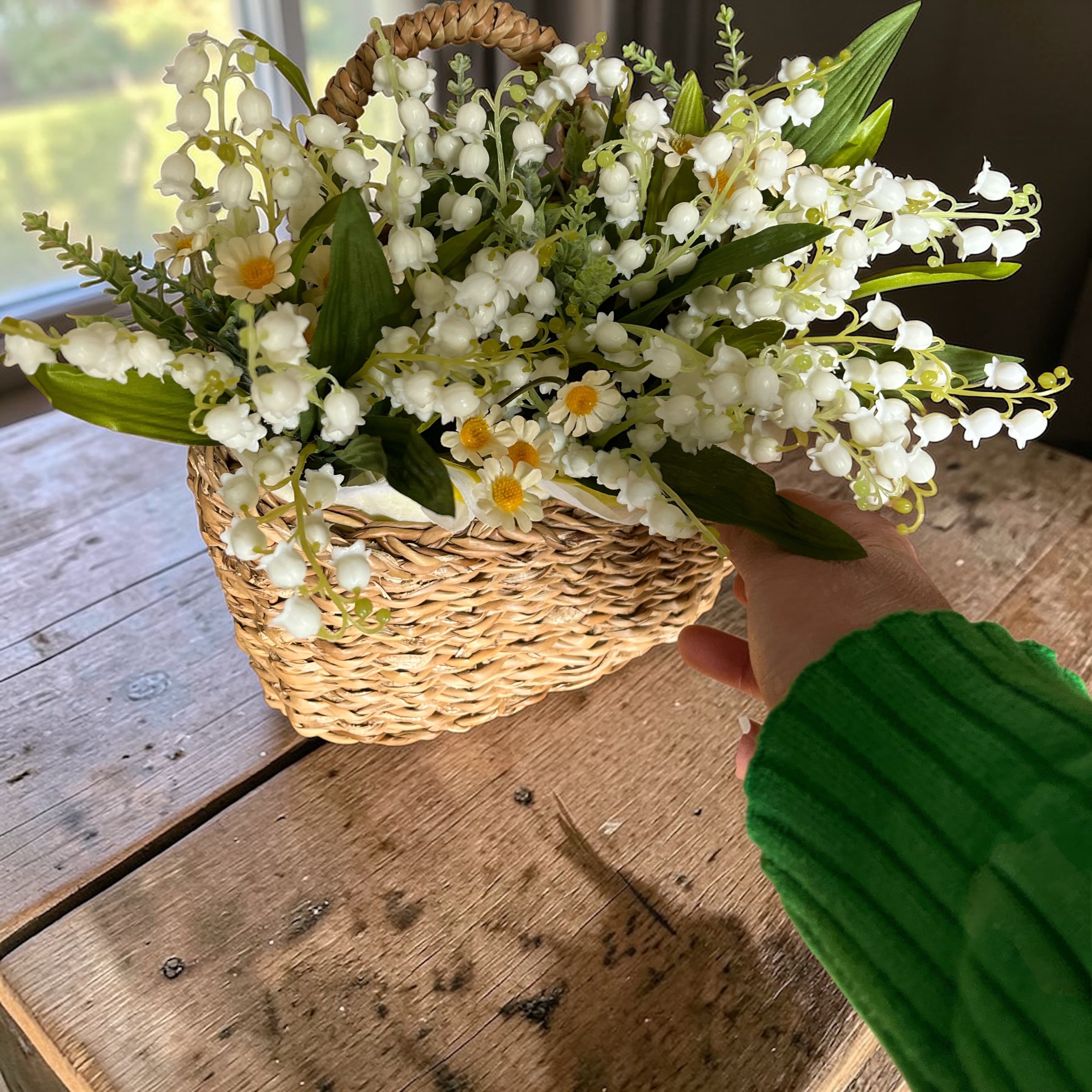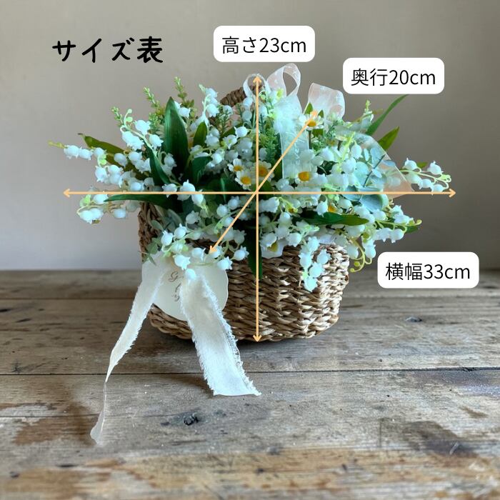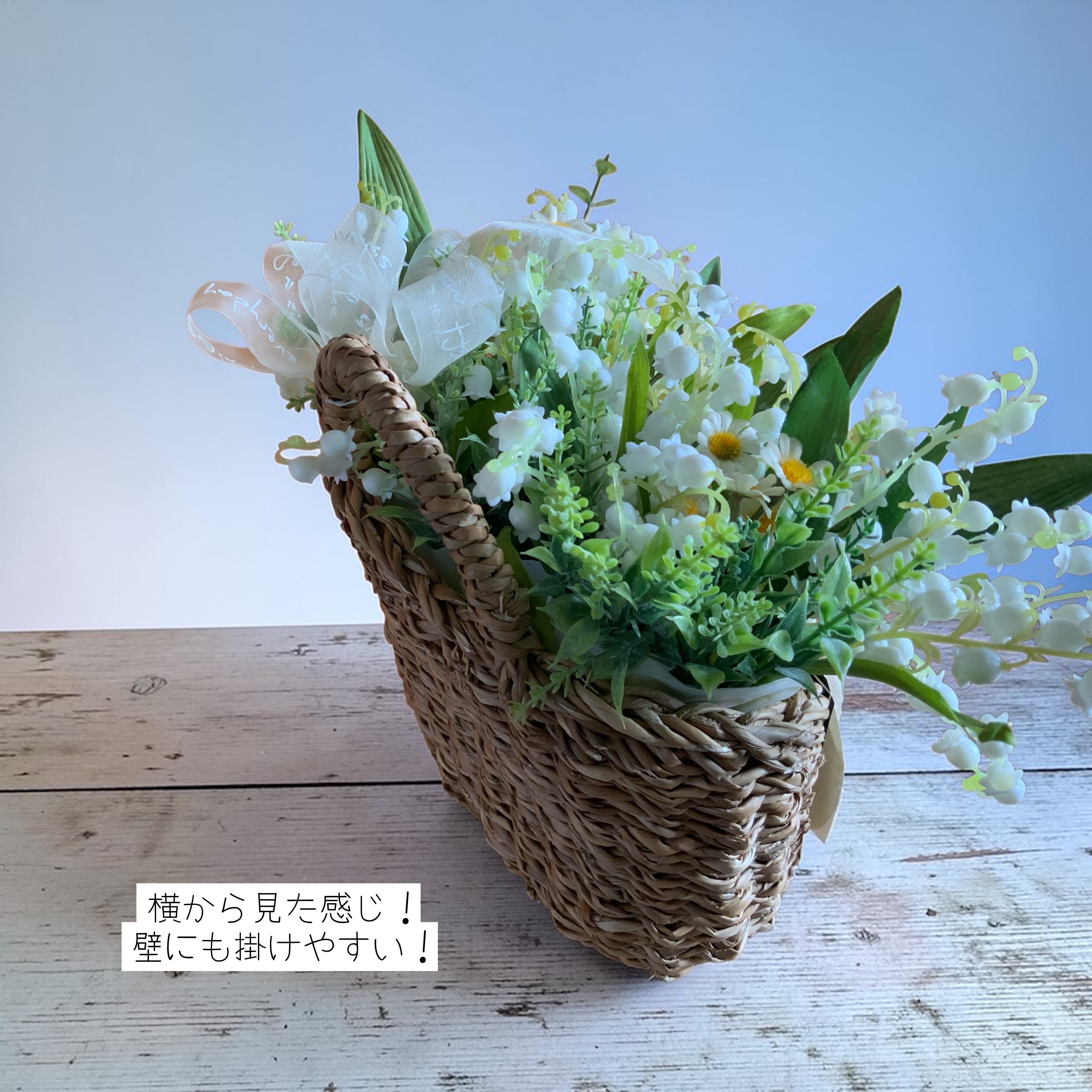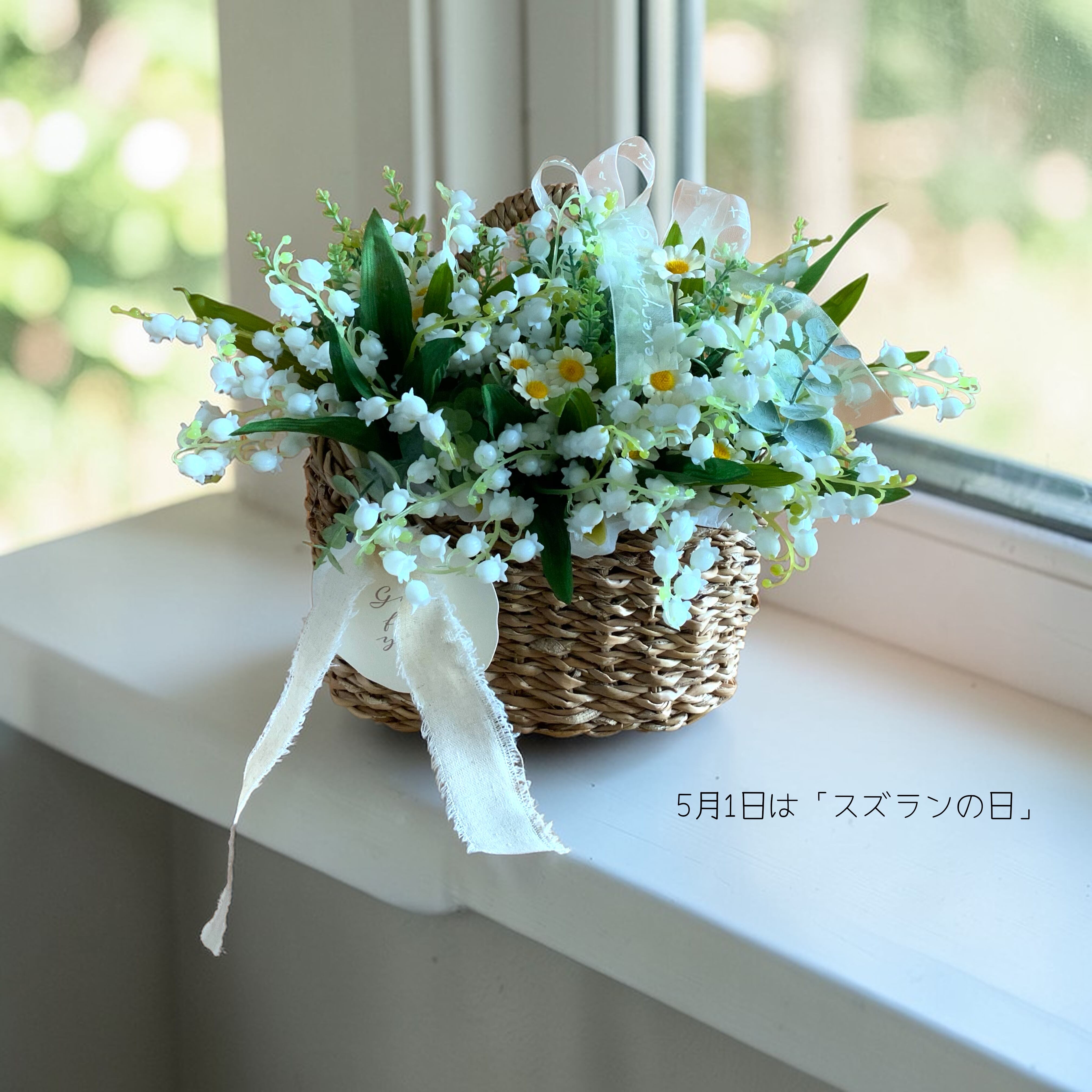 5月1日はフランスでは#ミュゲの日(スズランの日)と呼ばれ、大切な友人知人家族へ、相手の幸せを願ってスズランを贈る風習があります。スズランの花言葉「純粋」「幸せが訪れる」とあるように大切な人へ想いを伝える贈り物としても人気があります。どこに飾ってもインテリアに合わせやすいナチュラルなスタイルで、リビングのテーブルや玄関に彩りを添え、お部屋の雰囲気を一段と引き立ててくれます。壁掛けでも置いても飾れるバスケットです。ぜひ、大切な瞬間を共にするアイテムとしてご利用ください。